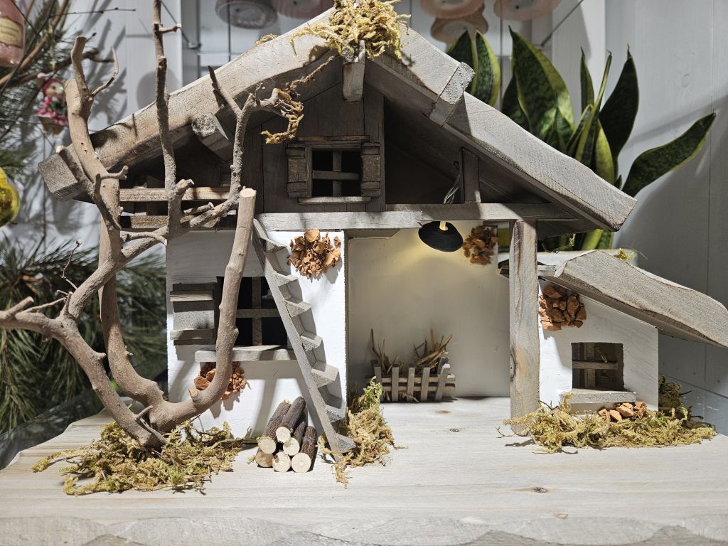 Drevo, domček obsahuje aj svetlo na baterky, 39x24cm