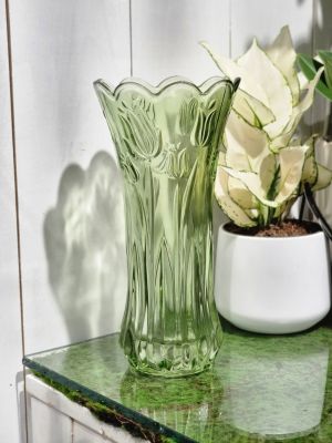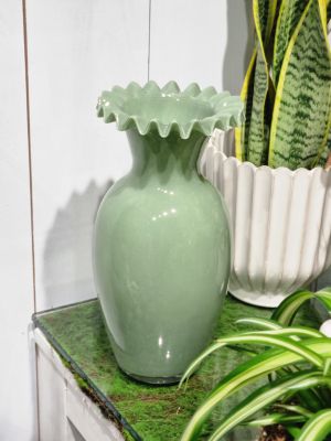 Porcelánová váza zelená s vtáčikmi výška 20cm
