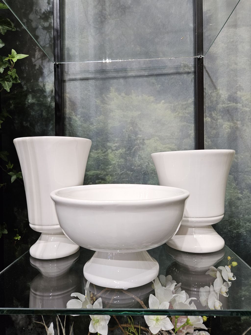 Biela nádoba na nožičke stredná