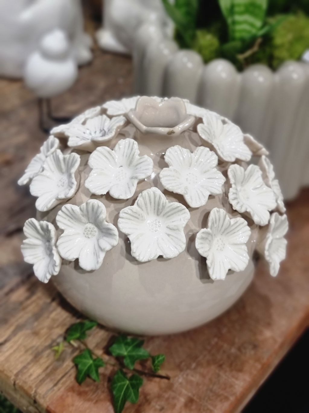 Výška 16cm Béžová okrúhla váza s 3D kvetmi