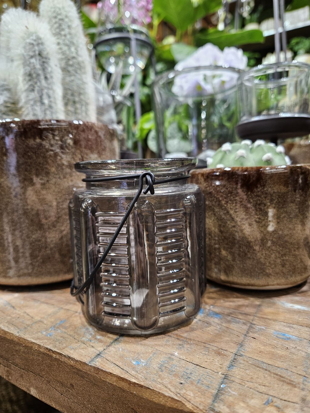 Lampášik na zavesenie v dymovej farbe. Výška 9cm. Sklo.