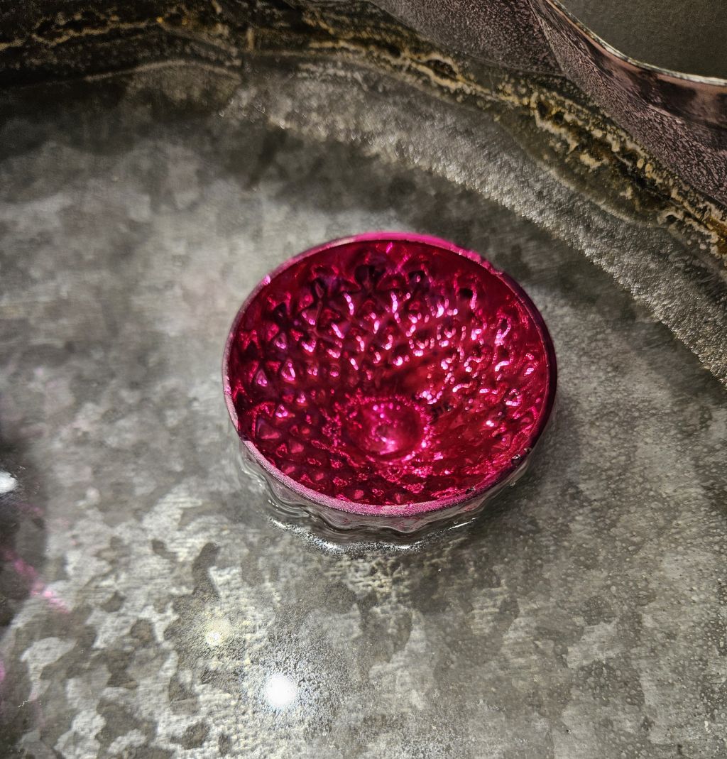 Nádobka zo skla na vodu. Vhodná napríklad na čajovú sviečku. Priemer 7cm.