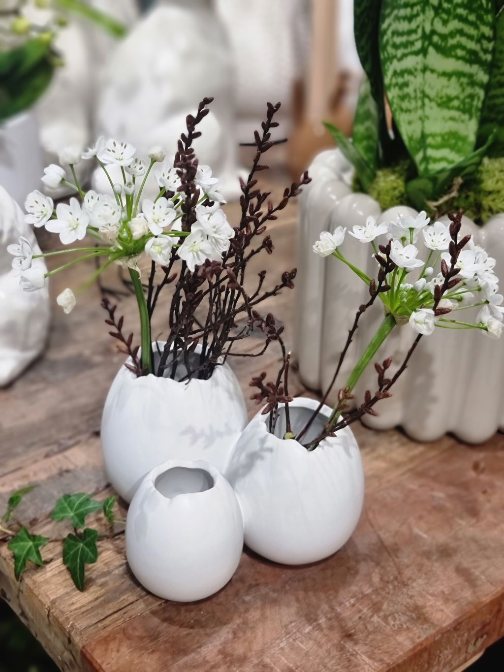 Moderná váza - biele vajíčka