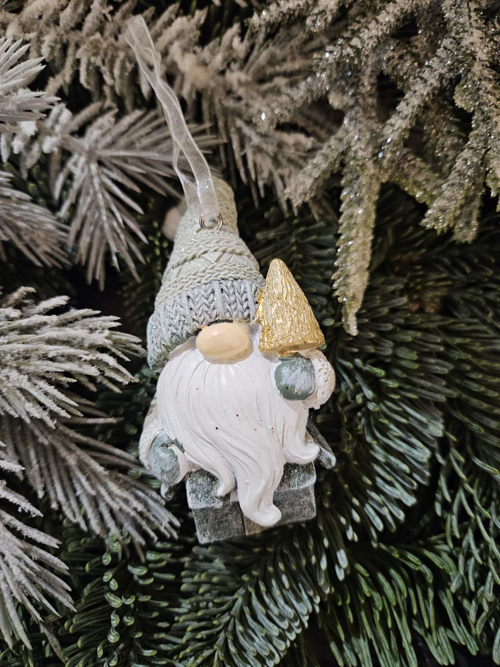 Ozdoba trpaslík zelený na darčeku