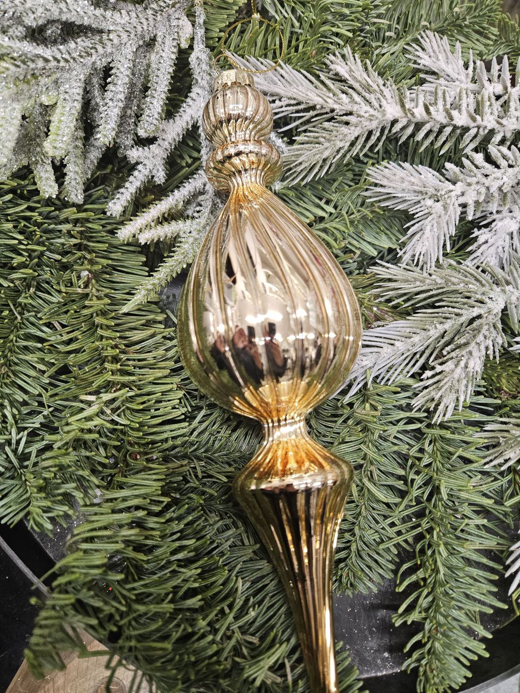 E-shop Sklenená ozdoba podlhovastá zlatá
