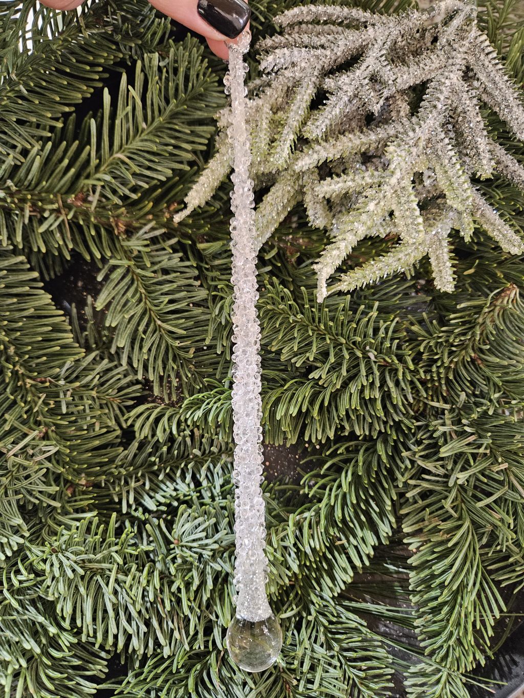 Sklenený cencúľ kvapeľ kamienkový veľký