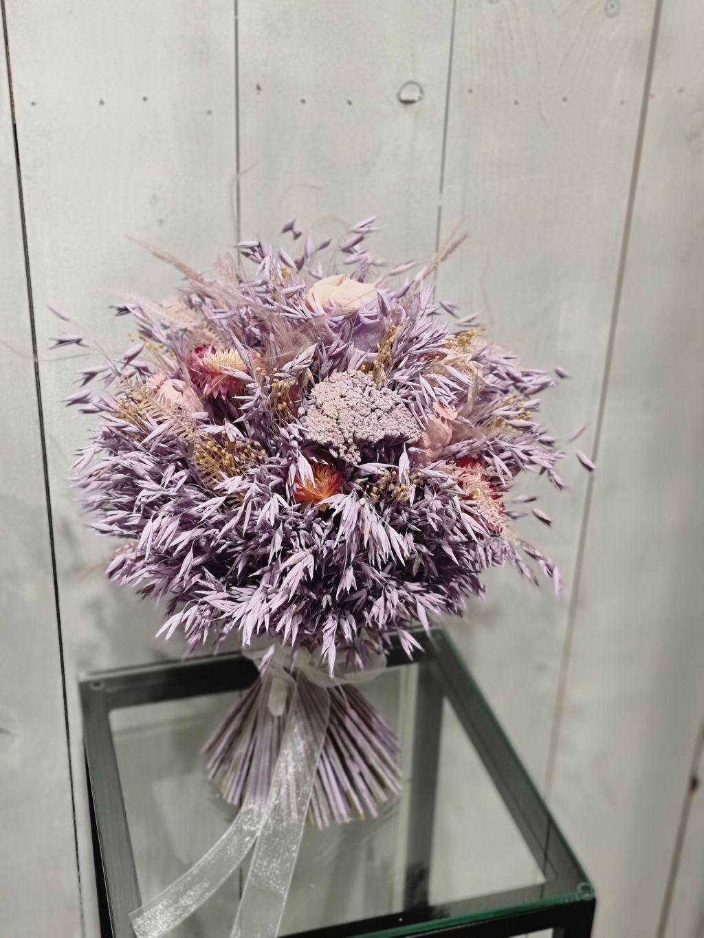 Uviazali sme pre Vás sušenú prírodnú kyticu kde je stabilizovaná ruža , slamienky aj ovos. Výška 40cm