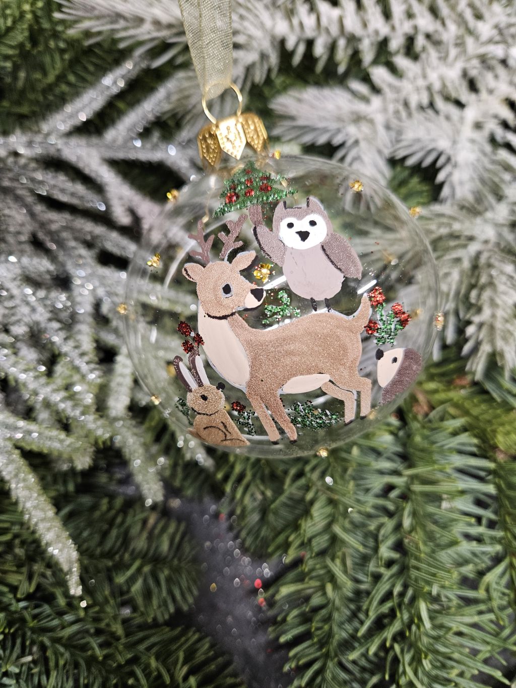 E-shop Zdobená sklenená gulička priesvitná lesná