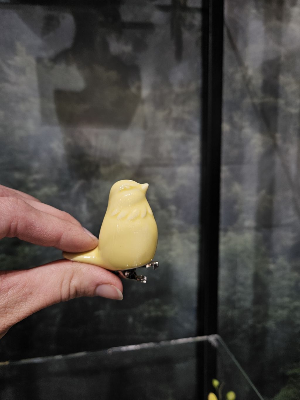 Žltý keramický vtáčik na štipci. Výška 5cm